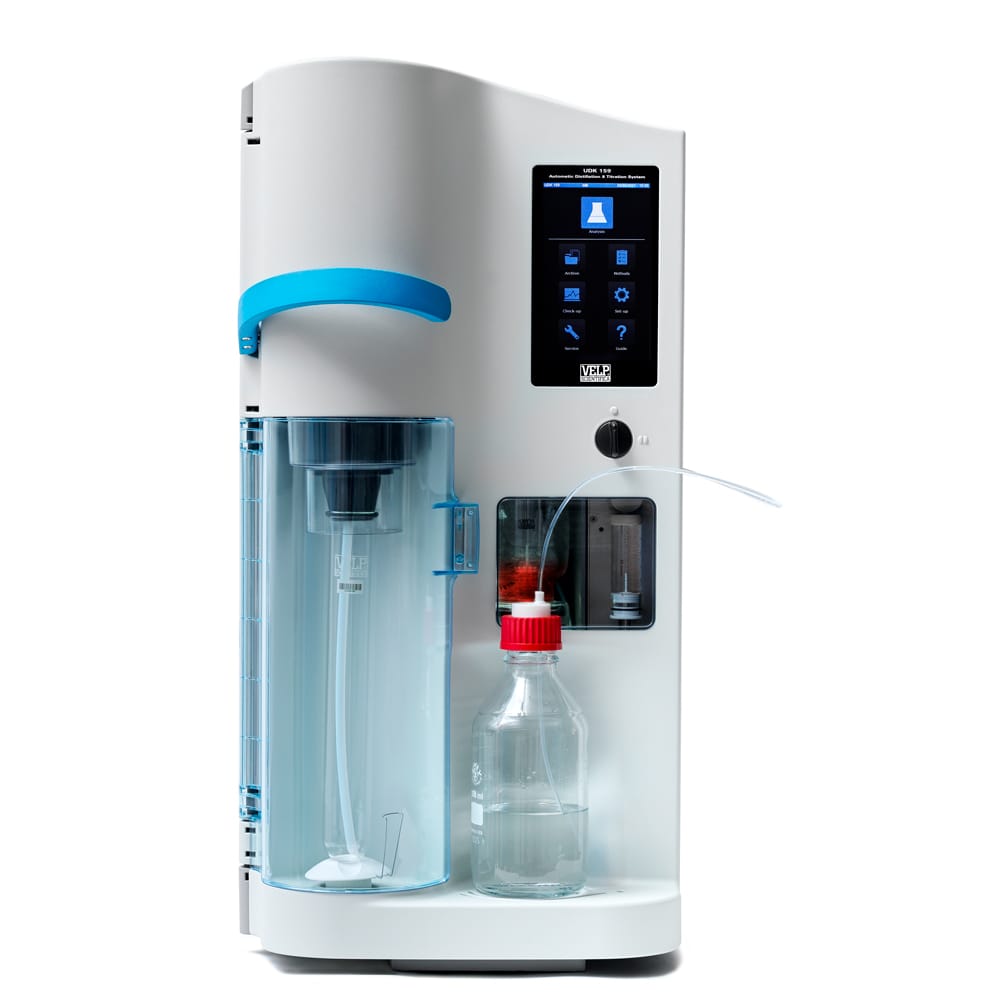 O destilador kjeldahl automático UDK 159 é ideal para laboratórios que buscam resultados precisos e reprodutíveis e para atender diversas aplicações, tais como: determinação de nitrogênio amoniacal, nitrogênio proteico (Kjeldahl ou destilação alcalina direta), nitrogênio nítrico (após a redução), fenóis, ácidos graxos, TKN em amostras ambientais, cianetos, dióxidos de enxofre, álcool e fertilizantes com liga de devarda. Com destilação e titulação totalmente automáticas.